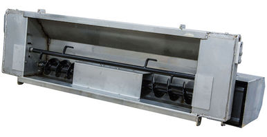 The spreader is constructed of corrosion resistant 304 stainless steel. It features an anti-flow plate as well as a lifting loop for ease of installation. The spreader is equipped with a 5 in. dual flight auger with 3/8 in. flighting and a breaker bar with mixing tines that keeps material moving and screens on either end. It's powered by a 3/4 HP motor.